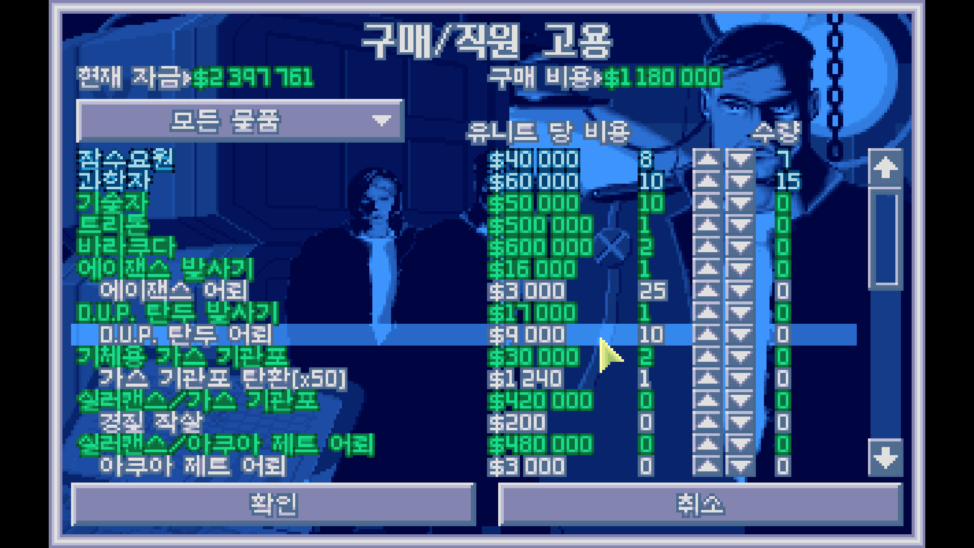 7명의 대원을 추가적으로 고용한다. 그리고 전작과 마찬가지로 과학자 확보는 필수적. 25명을 고용한다. 연구를 빨리 진행하고 싶다면 기술자를 다 해고하고 그 자리를 과학자로 채울 수도 있다. 가우스는 레이저에 비해 한참 못 미치는지라 반드시 연구할 필요도 없고 소닉 무기는 노획으로도 충분하기 때문. 초반에 딱히 제작해야 할 물건도 없으니 기술자는 천천히 채워도 된다.